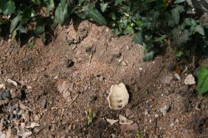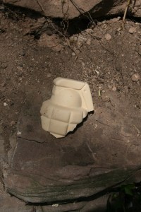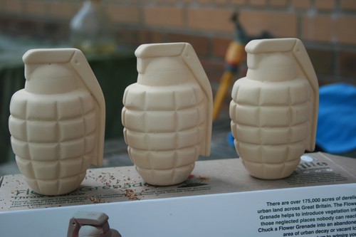 Anyhoo we have just spent a pleasant afternoon throwing away her Christmas present to me, three hand grenade shaped clay seed bombs (see exhibit 1 below M’Lud):